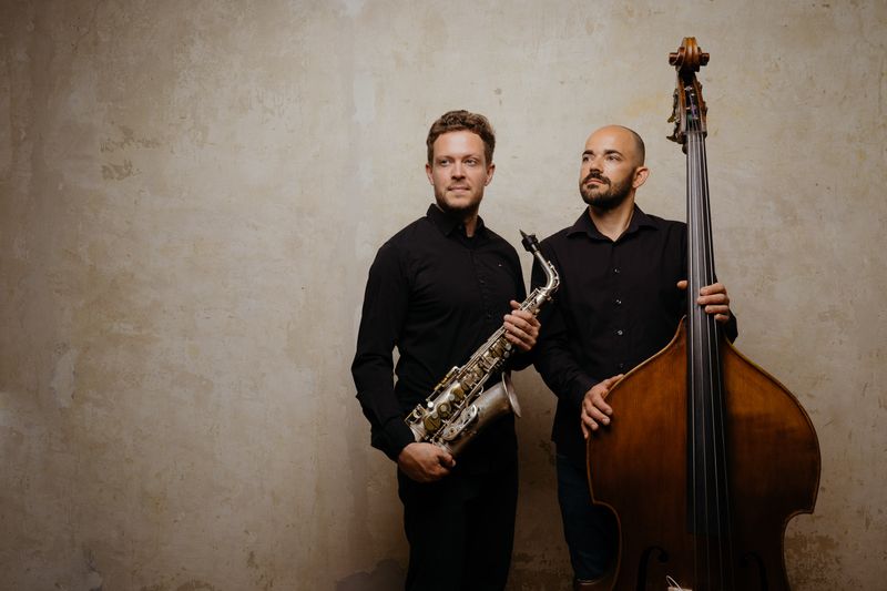 Ein Mosaik besteht aus vielen kleinen Einzelteilen verschiedener Formen und Farben, welche gemeinsam ein Gesamtkunstwerk bilden. Auf musikalischer Ebene erschafft das Duo, bestehend aus Joachim Staudt und Axel Kühn, in seinen Kompositionen neue Klangwelten, die durch Kontraste und einer enormen Farbvielfalt bestechen und so viele Parallelen zu einem Mosaik aufweisen. Unüberhörbar ist die große und scheinbar ungezwungene stilistische Vielfalt, mit der sich die beiden Musiker mühelos über Genregrenzen hinweg bewegen. Das Duo beweist, dass es keiner großen Besetzung bedarf, um auf eine große Palette an Klangfarben zuzugreifen. Das Altsaxophon – mal lyrisch, mal zupackend – wechselt sich mit der hölzernen Bassklarinette ab. Der Bass ist mal Fundament, mal Melodie- und mal Percussion-Instrument. Und hinter allem schwebt hin und wieder der feine Klang der Shrutibox, die allem eine magische Note verleiht. So entsteht ein für eine Duo-Besetzung außergewöhnlich orchestraler Klang, der komplett akustisch und ohne den Einsatz von Elektronik, Effekten und Loops erzeugt wird. Schnell wird deutlich, dass sich hier zwei perfekt harmonierende Duo-Partner mit einer gemeinsamen Vision gefunden haben. Verwurzelt sind die beiden langjährigen musikalischen Weggefährten im Jazz. Als Komponisten und Improvisatoren haben sie längst ihre ganz eigenen Stimmen gefunden. Nun haben sie im Duo-Kontext die Möglichkeit zu zeigen, wie weit ihr musikalischer Horizont reicht. Beide haben schon an einer beachtlichen Anzahl von Tonträgern und Projekten mitgewirkt. Auch als Komponisten und Bandleader sind beide Musiker mit eigenen Formationen erfolgreich. Staudts mittlerweile drittes Album „Quest“ erschien 2020. Und Kühn, Landesjazzpreisträger des Jahres 2009, veröffentlichte 2020 mit seiner Solo-CD „Bass Stories“ sein bereits sechstes Album unter eigenem Namen. Joachim Staudt - Altsaxophon, Bassklarinette,